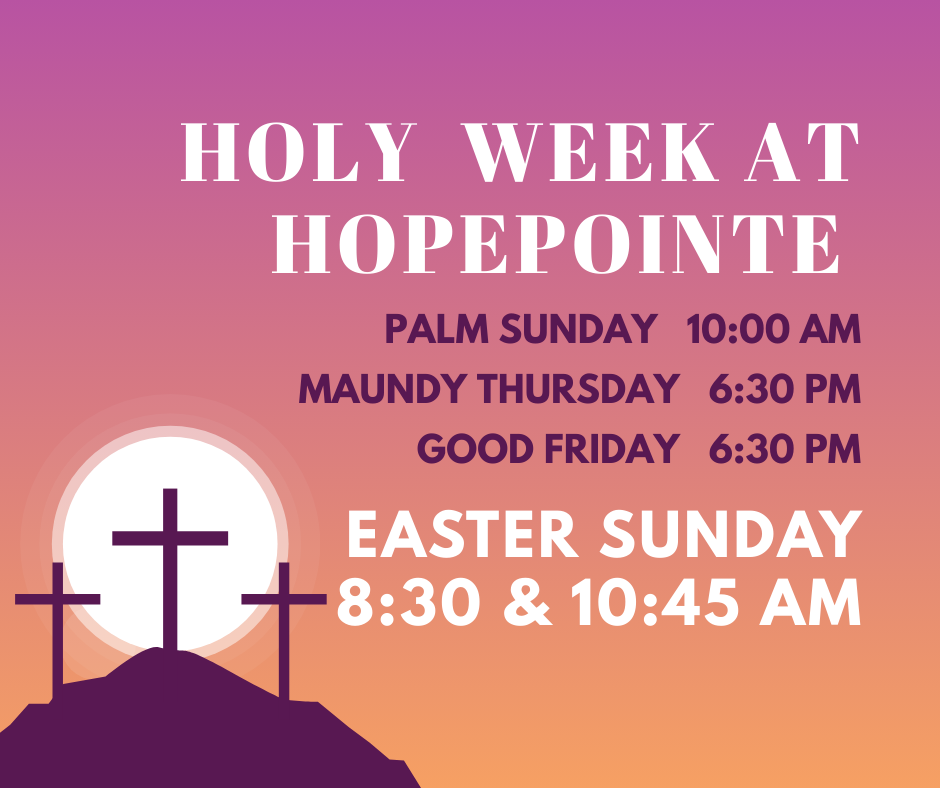 At HopePointe, we make disciples who know and love God, grow together in Christ, and sow the seeds of the Kingdom in the power of the Holy Spirit.